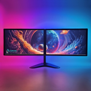 2x24″ Dual Monitors - Vertical Clamp Stand - (1920 x 1080) - 2xVGA