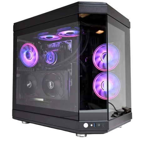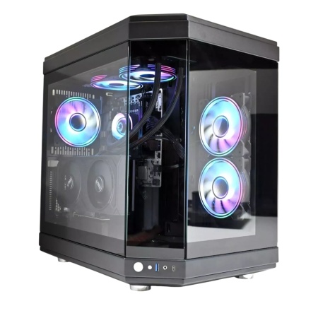 The GameMax Hype finished in all black and features a 3-piece panoramic tempered glass design with a forty-five-degree viewing angle captures the attention and draws the eye of the viewer into the case. Built for the ultimate photo and display potential. See your build the way it was meant to be seen from the left or right side of your desk with a simple turn.