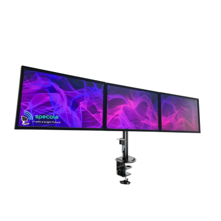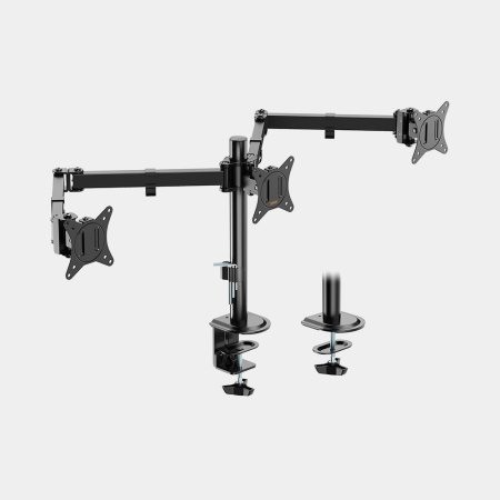Made from high grade steel and robust aluminium, this practical triple mount lets you view three screens side by side at just the right angle – great for reducing eye and neck strain.